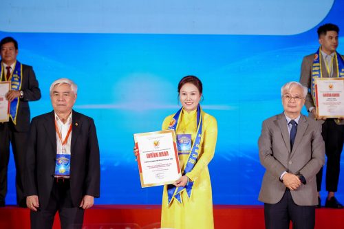 Hình 2. Đại diện Yan Nest trên sân khấu trong giây phút nhận giải thưởng danh giá.